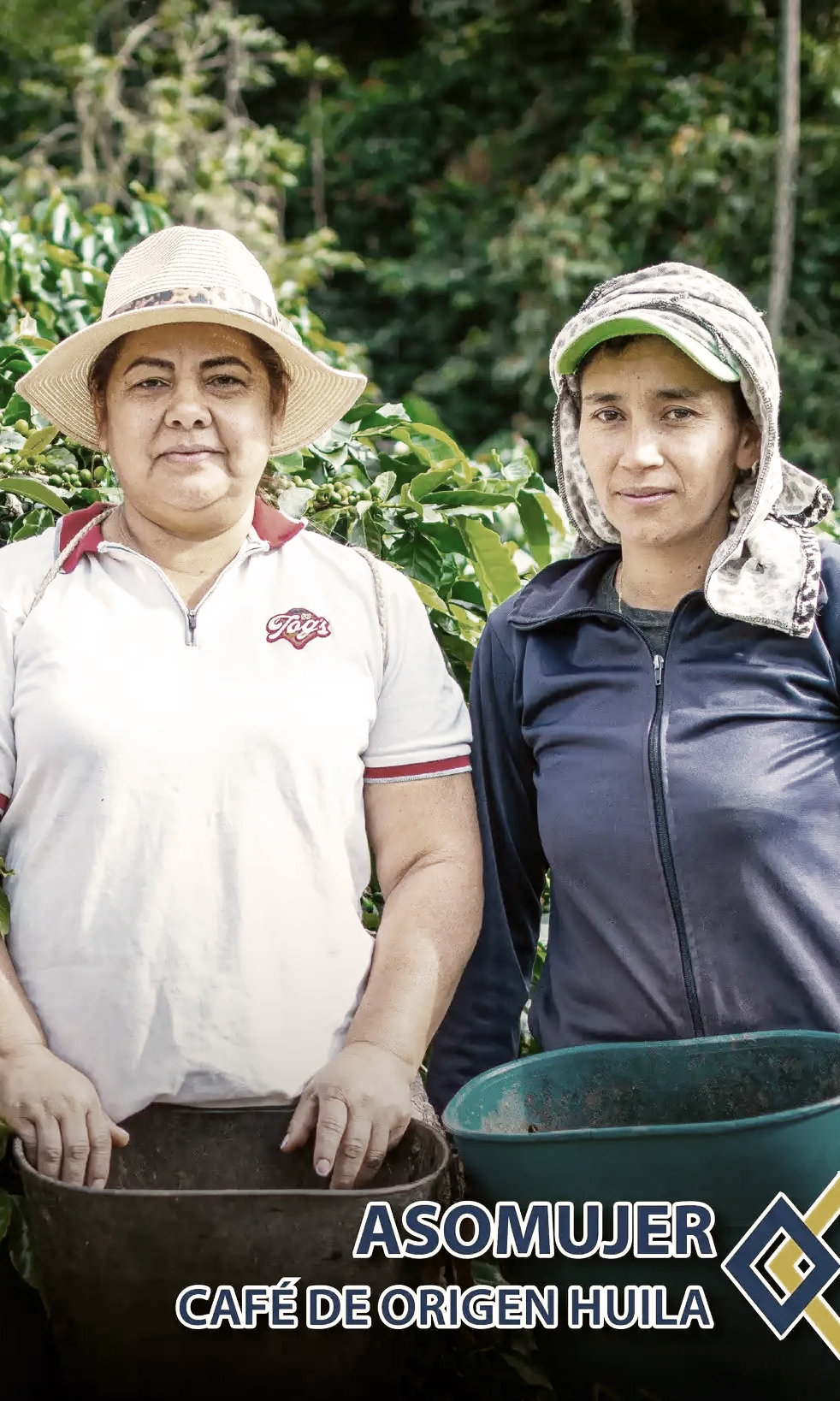Kávénk a Huila megyei ASOMUJER (Asociación de Campesinas del Sur del Huila) szövetkezettől érkezett. A csoportot 2007-ben hívta életre tíz nő, akik új, alternatív üzleti lehetőségeket kerestek, hogy kemény munkájukért cserébe jobb körülményeket vívjanak ki. Ma az ASOMUJER hetvenöt női termelőből áll, köztük aktivistákból, egyedülálló anyákból és Kolumbia konfliktusai miatt lakóhelyüket elhagyni kényszerültekből. A kávé koffeinmentesítést szintén helyben végezték, cukornádból kivont, etil-acetátos (E.A.) eljárással. Ebből mind a helyi gazdaság, mind a kávé profitál, hiszen a cukornád Kolumbiában könnyen elérhető, így a kávét nem szükséges távoli országokba szállítani koffeinmentesítésre, így megkímélve azt a szállítás és a raktározás negatív hatásaitól.
